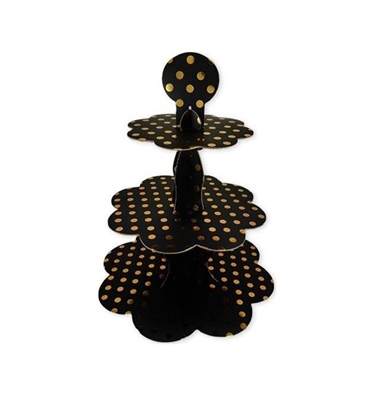 3 Katlı Cupcake Standı Siyah-Gold Puantiyeli