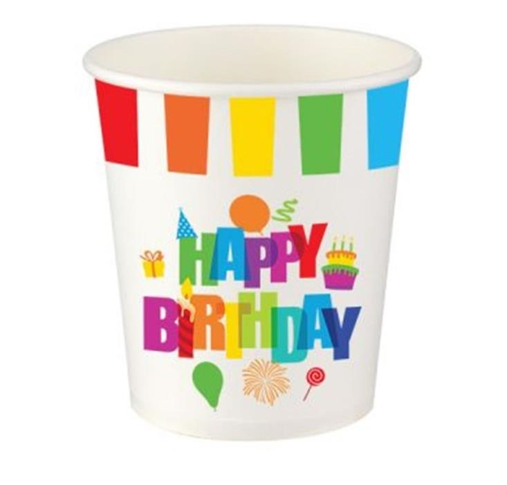 Renkli Doğum Günü Karton Bardak 8 Adet